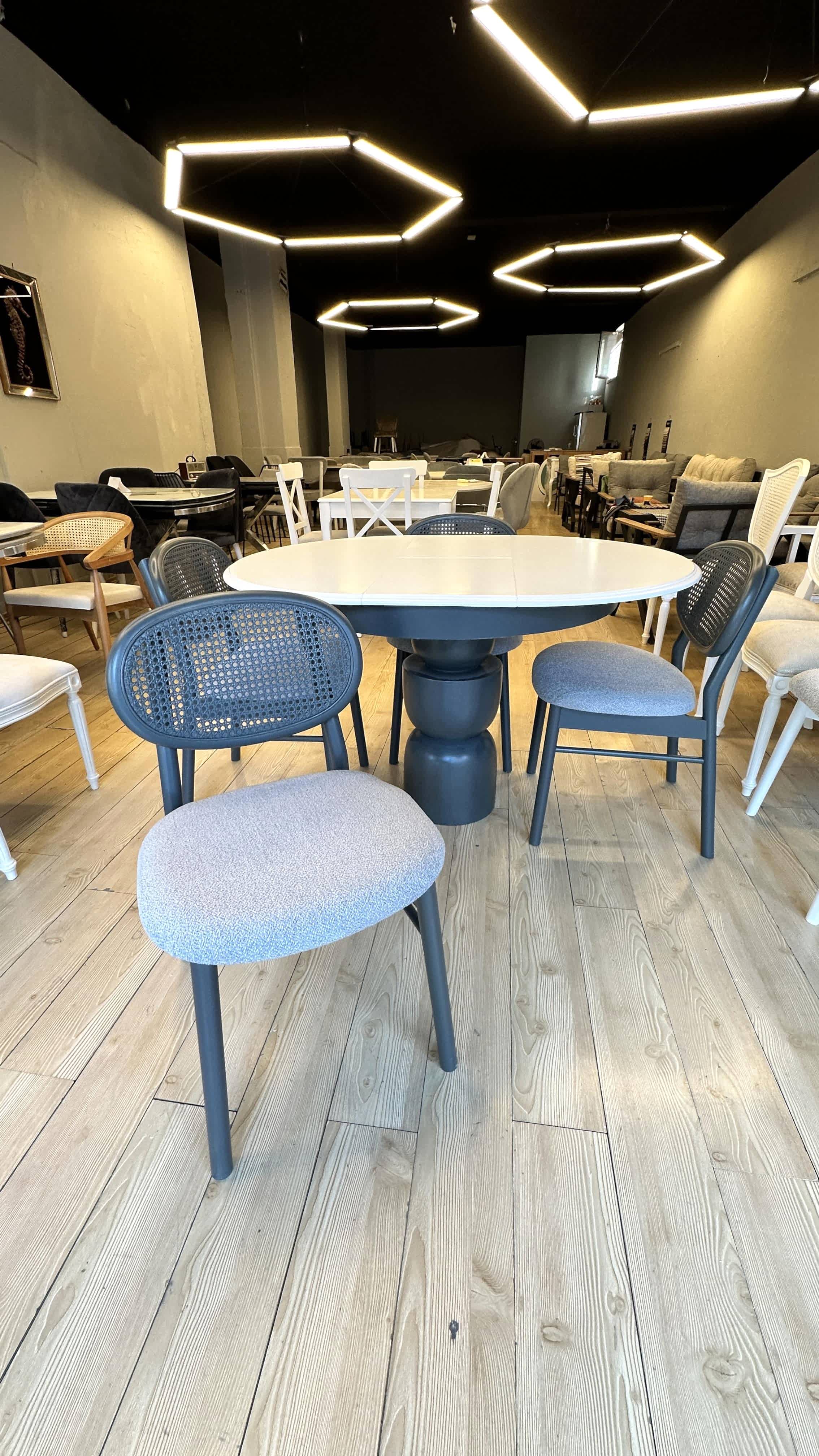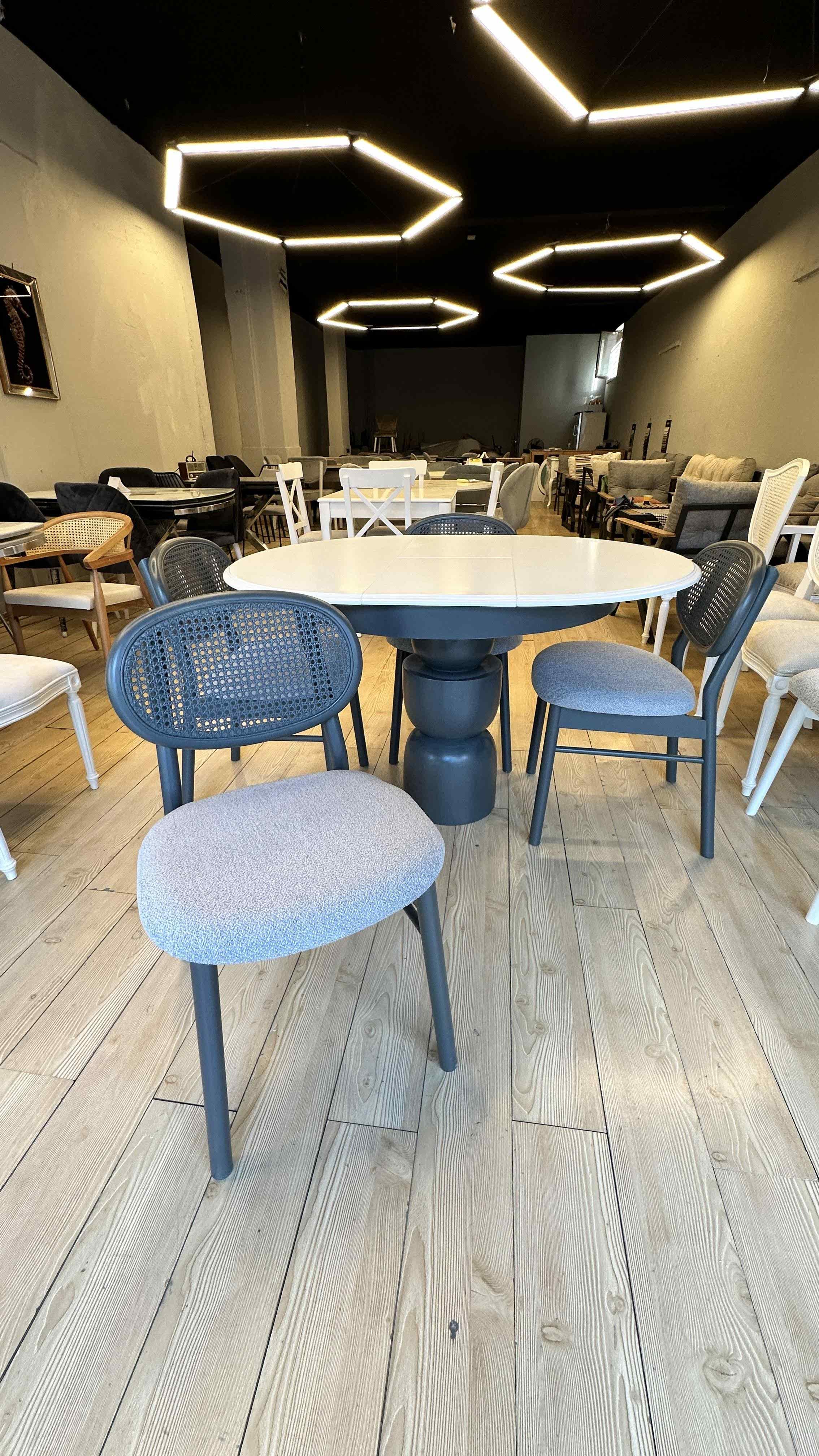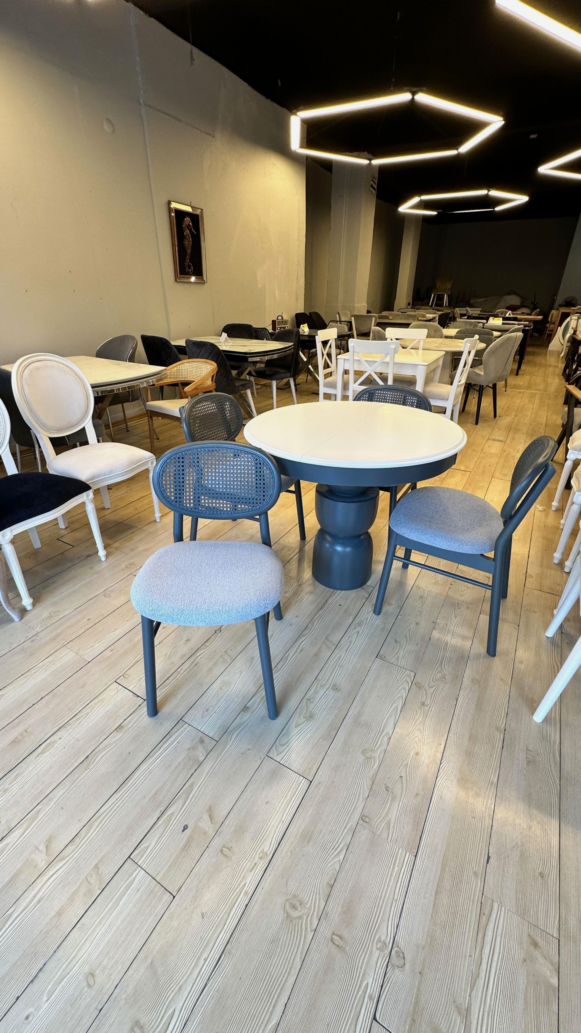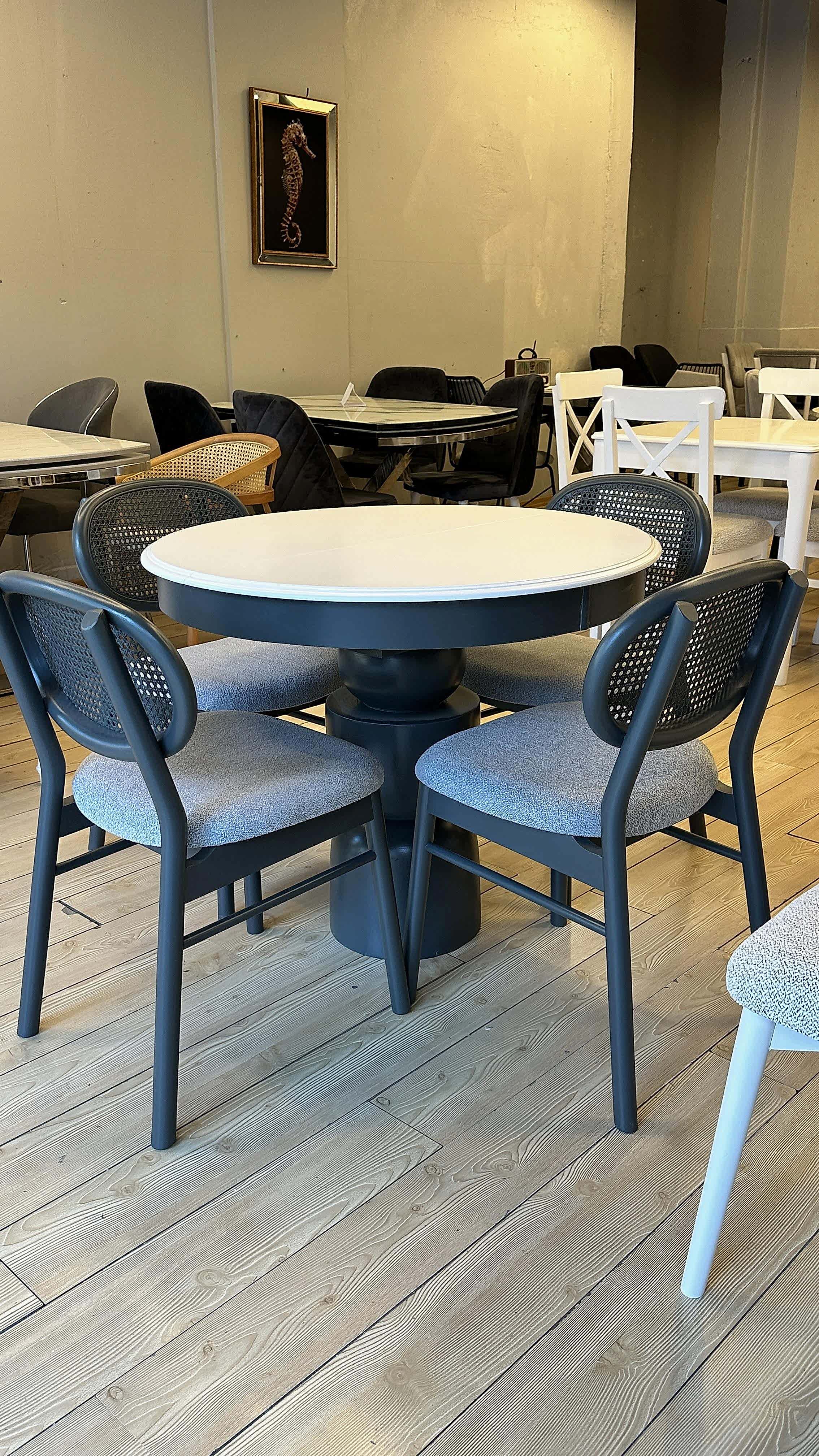 Mekanınızda estetik ve işlevselliği bir arada sunan şık bir yemek takımı arıyorsanız, bu özel tasarım tam size göre! 4 adet Hazeranlı Mayami sandalye ve 100 cm çapında açılır masa ile hem zarafeti hem de konforu bir arada bulacaksınız. Doğal ahşabın sıcaklığı ve Hazeran detaylarının zarafeti ile öne çıkan bu takım, mekânınıza sofistike bir hava katacak.